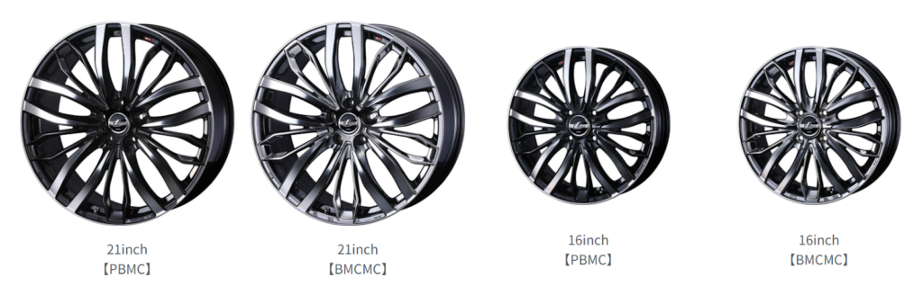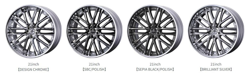 サイズは15インチから21インチまで幅広く展開し、トヨタ純正ナット・ボルト対応サイズも踏襲。