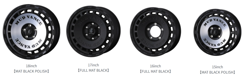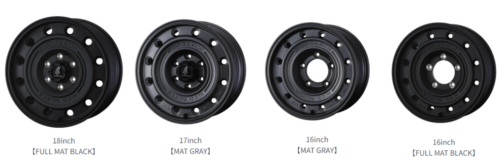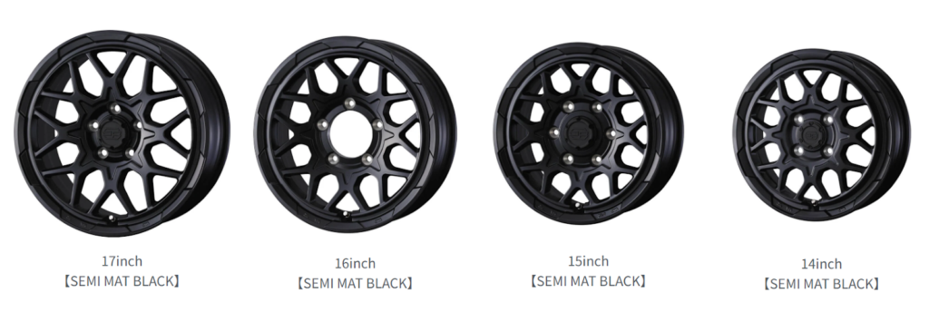 カラーはシリーズの世界観に合わせた設定で、SUV・4WDに最適な存在感をプラス。サイズは12インチから18インチまで展開し、「ジムニー」や「デリカD:5」、「ランドクルーザープラド」などの定番SUVに対応する。